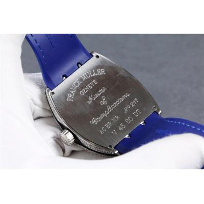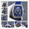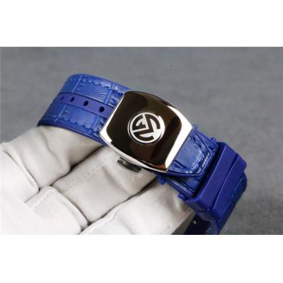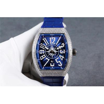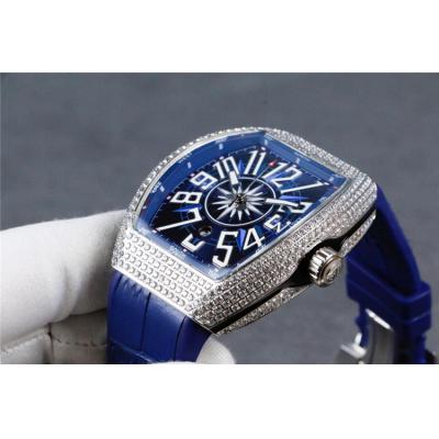 Home AAA-Brand Replica Vanguard A21j Automatic Movement Mens Watch Blue Dial Full Diamonds Case Leather Strap B E126