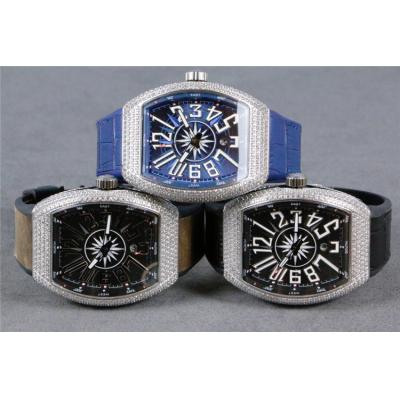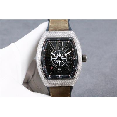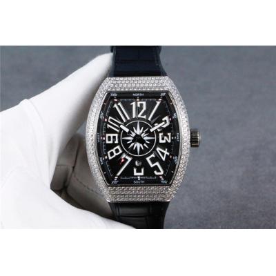 Replica Vanguard A21j Automatic Movement Mens Watch Black Dial Full Diamonds Case Leather Strap A E126 $288.00 $240.00