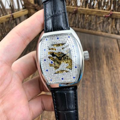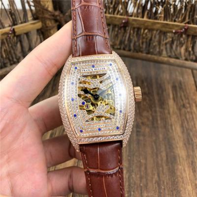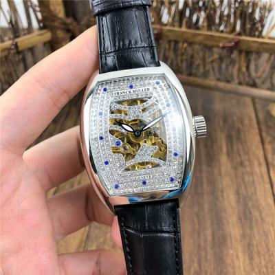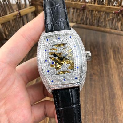 Replica Vanguard A21j Automatic Movement Mens Watch Diamonds Skeleton Dial Full Diamonds Case Leather Strap E97