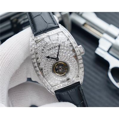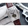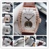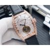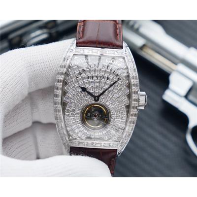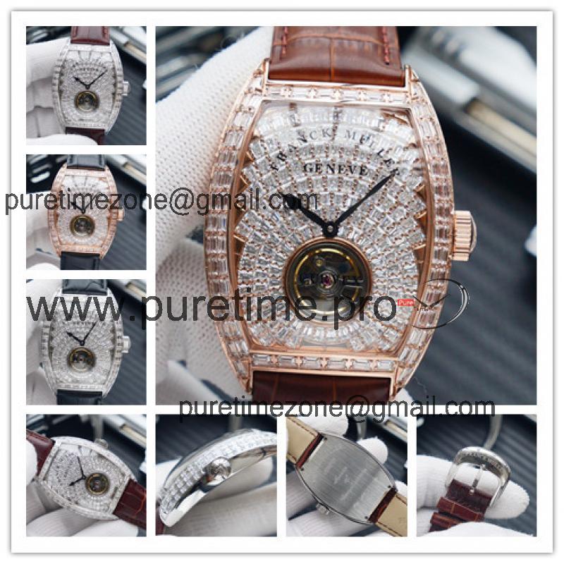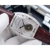 Replica Vanguard A21j Automatic Movement Mens Watch Full Diamonds Dial Diamonds Case Leather Strap E201