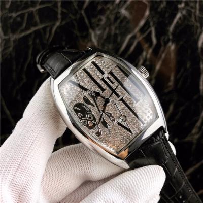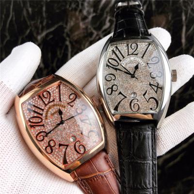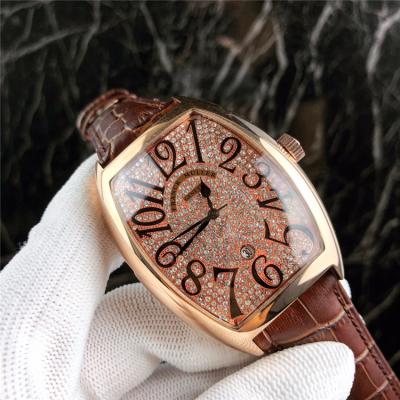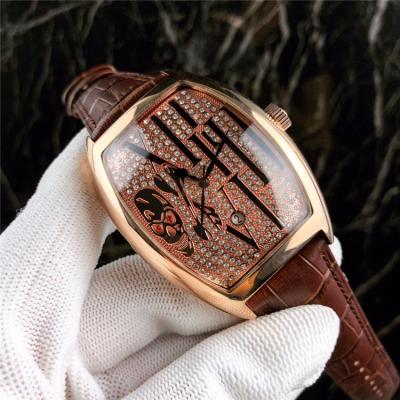 Replica Vanguard A21j Automatic Movement Mens Watch Full Diamonds Dial Leather Strap E24