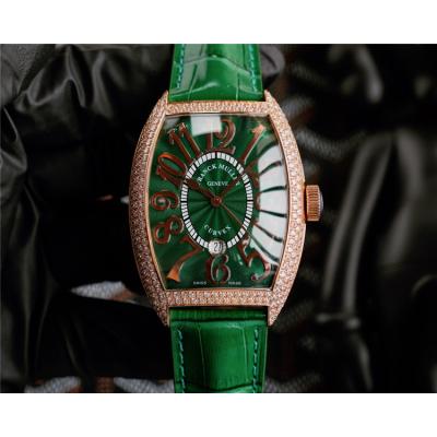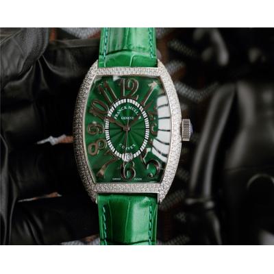 Replica Vanguard A21j Automatic Movement Mens Watch Green Dial Diamonds Case Leather Strap E241