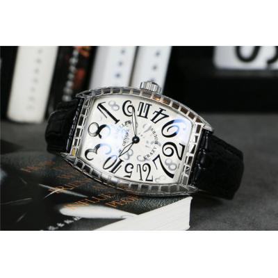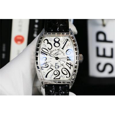 Replica Vanguard Swiss Quartz Movement Womens Watch White Dial Diamonds Case Leather Strap A E169 $114.00 $95.00