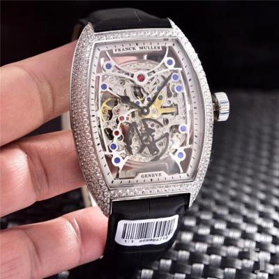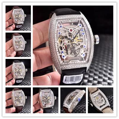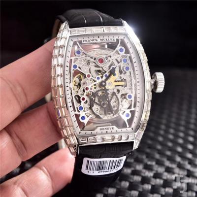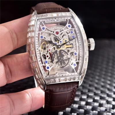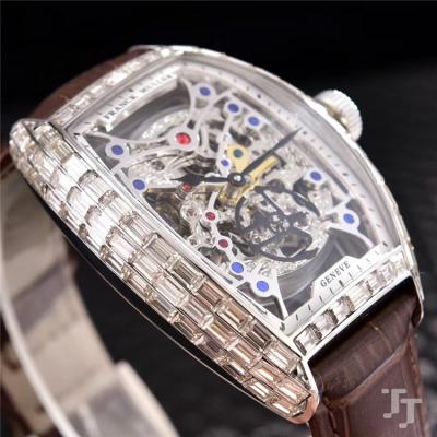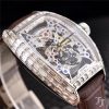 Replica Vanguard A21j Automatic Movement Mens Watch Skeleton Dial Diamonds Case Leather Strap A E22