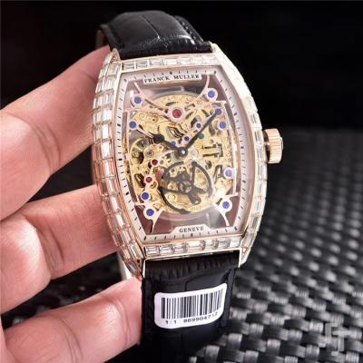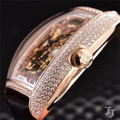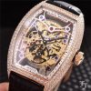 Replica Vanguard A21j Automatic Movement Mens Watch Skeleton Dial Diamonds Case Leather Strap A E22 $480.00 $400.00