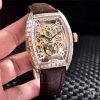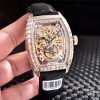 Replica Vanguard A21j Automatic Movement Mens Watch Skeleton Dial Diamonds Case Leather Strap B E22