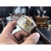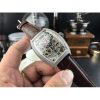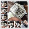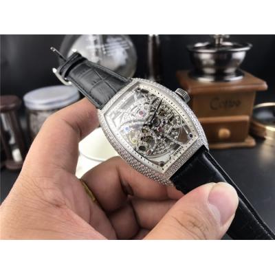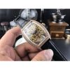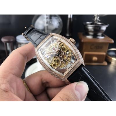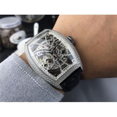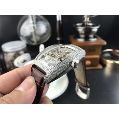 Replica Vanguard A21j Automatic Movement Mens Watch Skeleton Diamonds Dial Diamonds Case Leather Strap E156