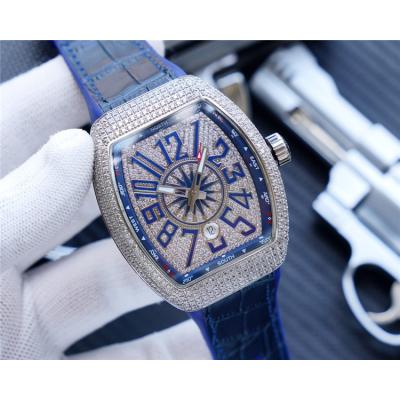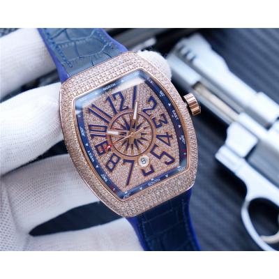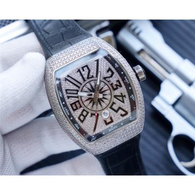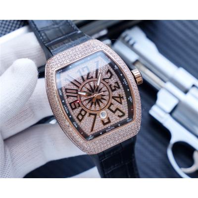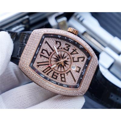 Replica Vanguard A2813 Automatic Movement Mens Watch Diamonds Dial Diamonds Case Leather Strap A E193