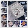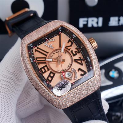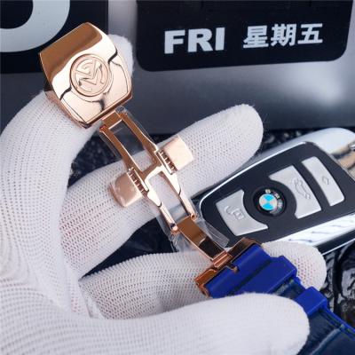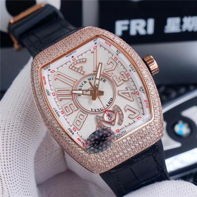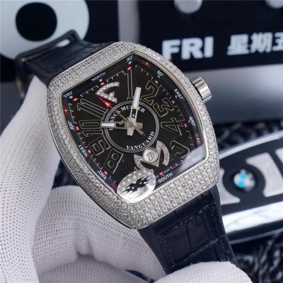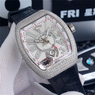 Replica Vanguard A2813 Automatic Movement Mens Watch White Dial Diamonds Case Leather Strap B E175