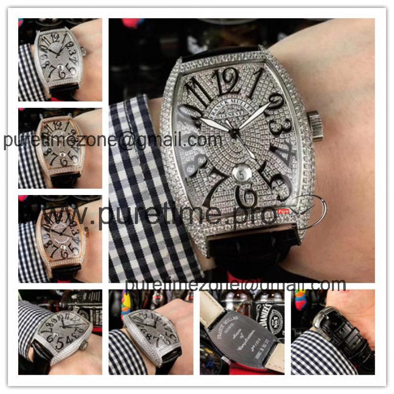 Replica Vanguard Japan Miyota 8215 Automatic Movement Mens Watch Full Diamonds Dial Diamonds Case Leather Strap E184