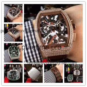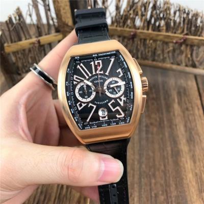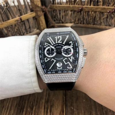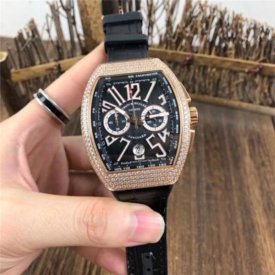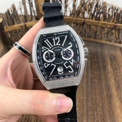 Home AAA-Brand Replica Vanguard Japan Quartz Chronograph Movement Mens Watch Black Dial Diamonds Case Leather Strap E78