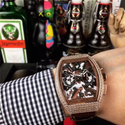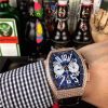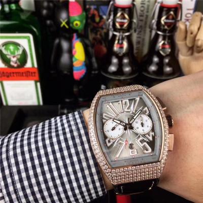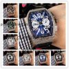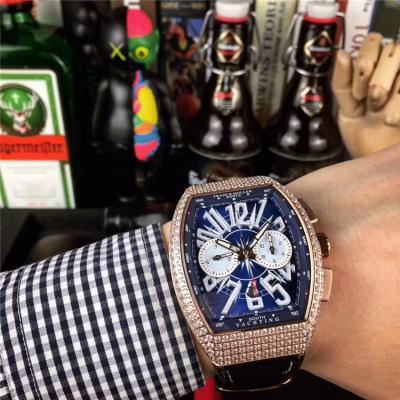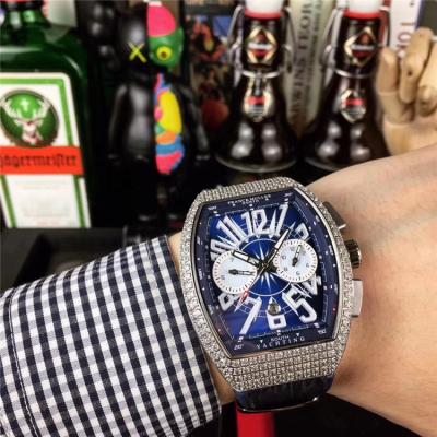 Home AAA-Brand Replica Vanguard Japan Quartz Chronograph Movement Mens Watch Blue Dial Diamonds Case Leather Strap E83