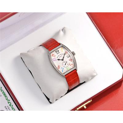 Replica Vanguard Swiss Quartz Movement Womens Watch Silver Dial Diamonds Case Leather Strap E172