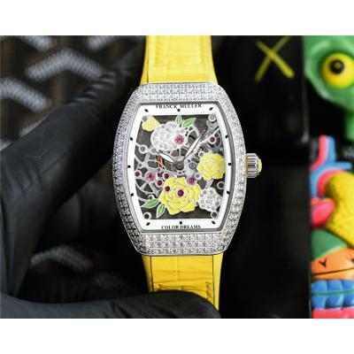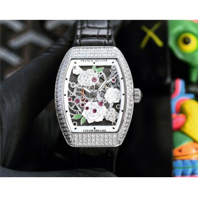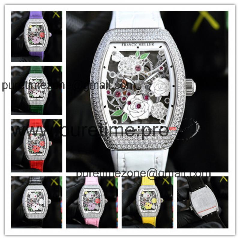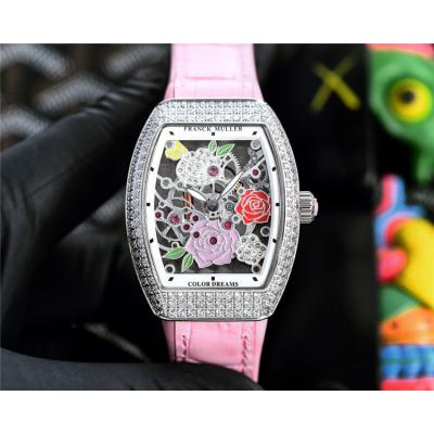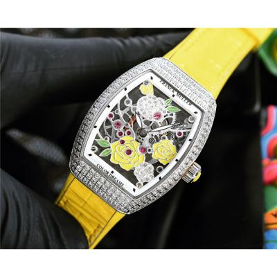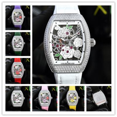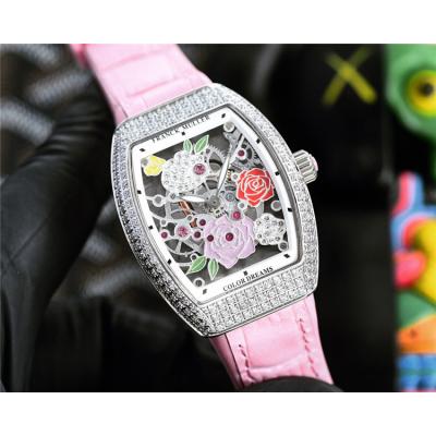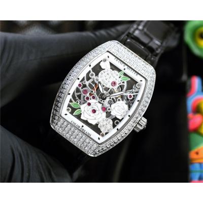 Home AAA-Brand Replica Vanguard Swiss Quartz Movement Womens Watch Skeleton Dial Diamonds Case Leather Strap A E248