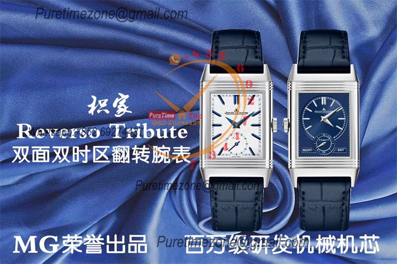 Reverso Classic 398258J Duoface Small Seconds 854A Automatic Mens Watch Best Edition MGF RG Blue Silver Dial