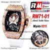 RM 71-01 Miyota 8215 Automatic Talisman Womens Watch RMF RG Diamonds Case Skeleton Dial White Rubber Strap Ladies