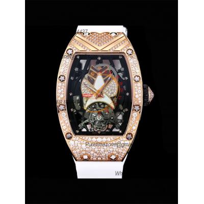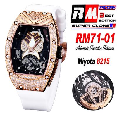 Home Richard Mille RM 71-01 Miyota 8215 Automatic Talisman Womens Watch RMF RG Diamonds Case Skeleton Dial White Rubber Strap Ladies