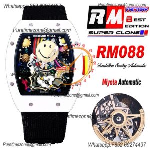 RM088 Tourbillon Smiley Miyota 8215 Automatic Mens Watch RMF White Ceramic Skeleton Dial Black Nylon $825.00 $550.00
