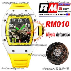 RM010 Miyota Automatic Mens Watch RMF White Ceramic Skeleton Dial Yellow Rubber CHS $675.00 $450.00