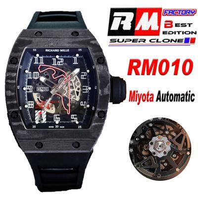Home Richard Mille RM010 Miyota Automatic Mens Watch RMF Carbon Fiber Skeleton Dial Black Rubber CHS