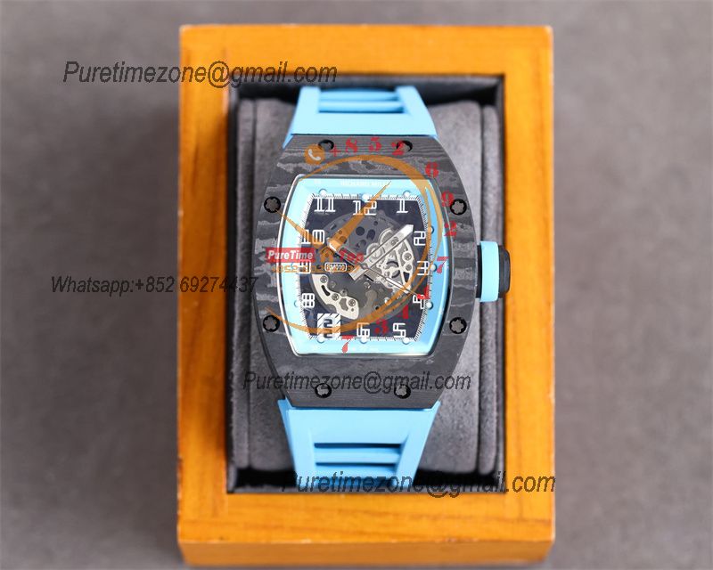 Home Richard Mille RM010 Miyota Automatic Mens Watch RMF Carbon Fiber Skeleton Dial Blue Rubber Strap CHS