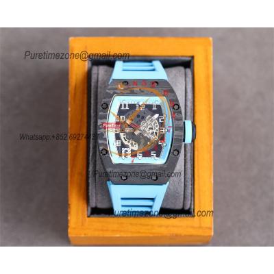 RM010 Miyota Automatic Mens Watch RMF Carbon Fiber Skeleton Dial Blue Rubber Strap CHS