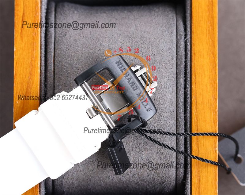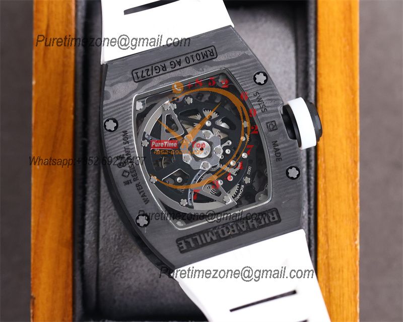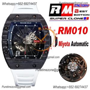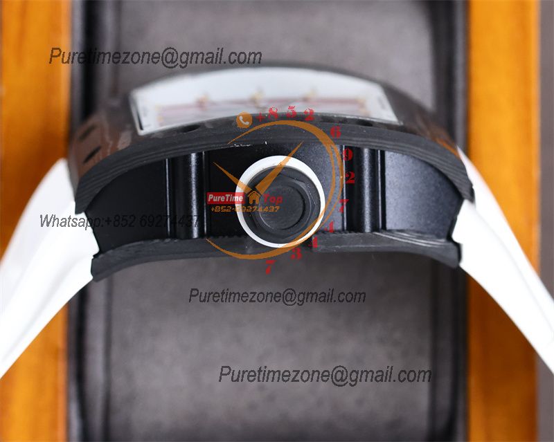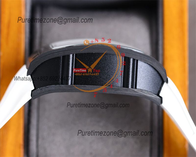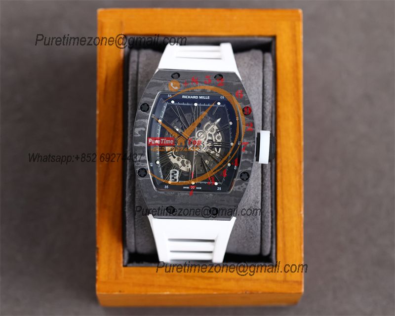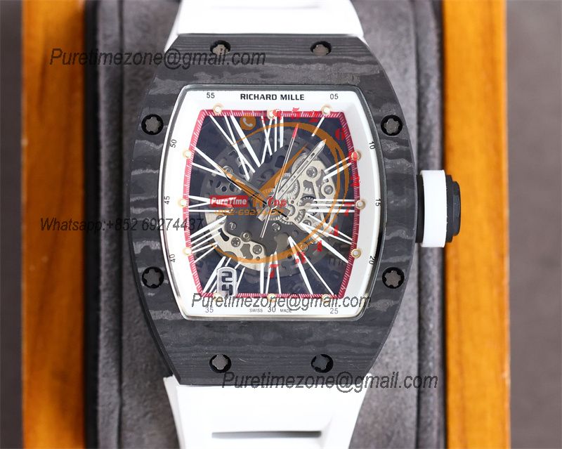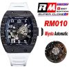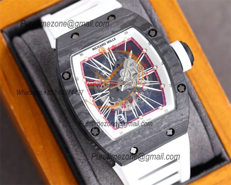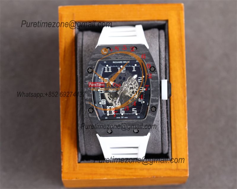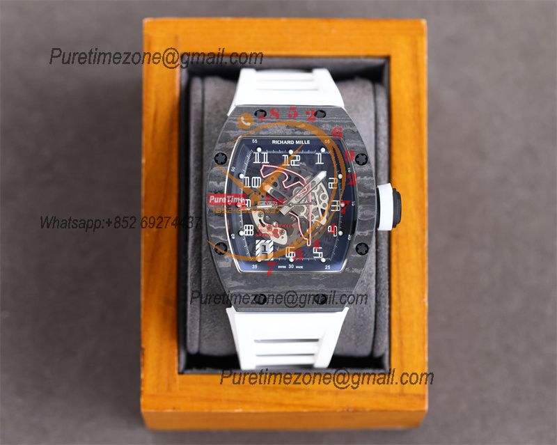 Home Richard Mille RM010 Miyota Automatic Mens Watch RMF Carbon Fiber Skeleton Dial White Rubber Strap CHS