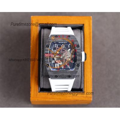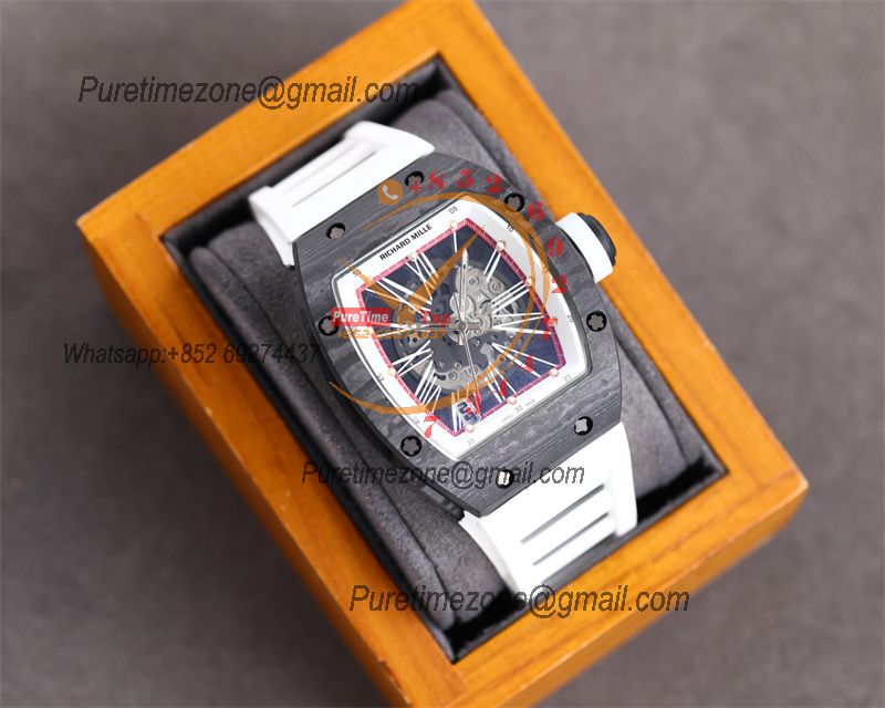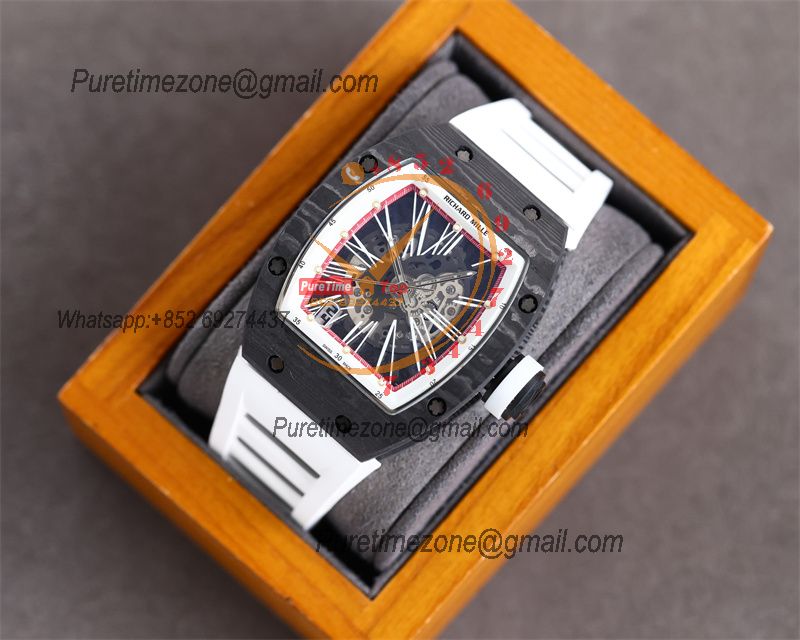 RM010 Miyota Automatic Mens Watch RMF Carbon Fiber Skeleton Dial White Rubber Strap CHS