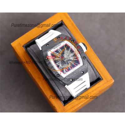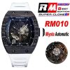 RM010 Miyota Automatic Mens Watch RMF Carbon Fiber Skeleton Dial White Rubber Strap CHS