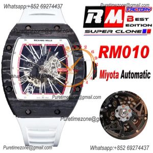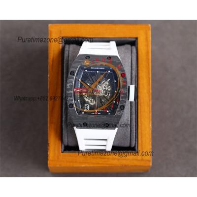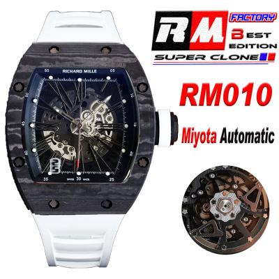 Home Richard Mille RM010 Miyota Automatic Mens Watch RMF Carbon Fiber Skeleton Dial White Rubber Strap CHS