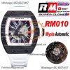RM12-01 José Balvin Automatic Tourbillon Mens Watch RMF Carbon Fiber Skeleton Dial All Black Rubber Strap CHS AAA