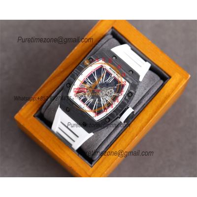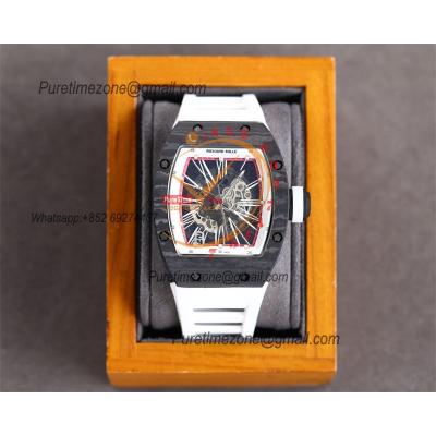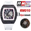 RM010 Miyota Automatic Mens Watch RMF Carbon Fiber Skeleton Dial White Rubber Strap CHS