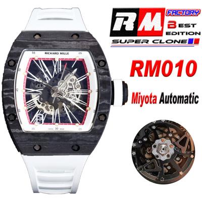 Home Richard Mille RM010 Miyota Automatic Mens Watch RMF Carbon Fiber Skeleton Dial White Rubber Strap CHS