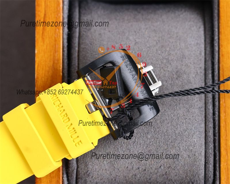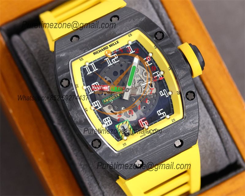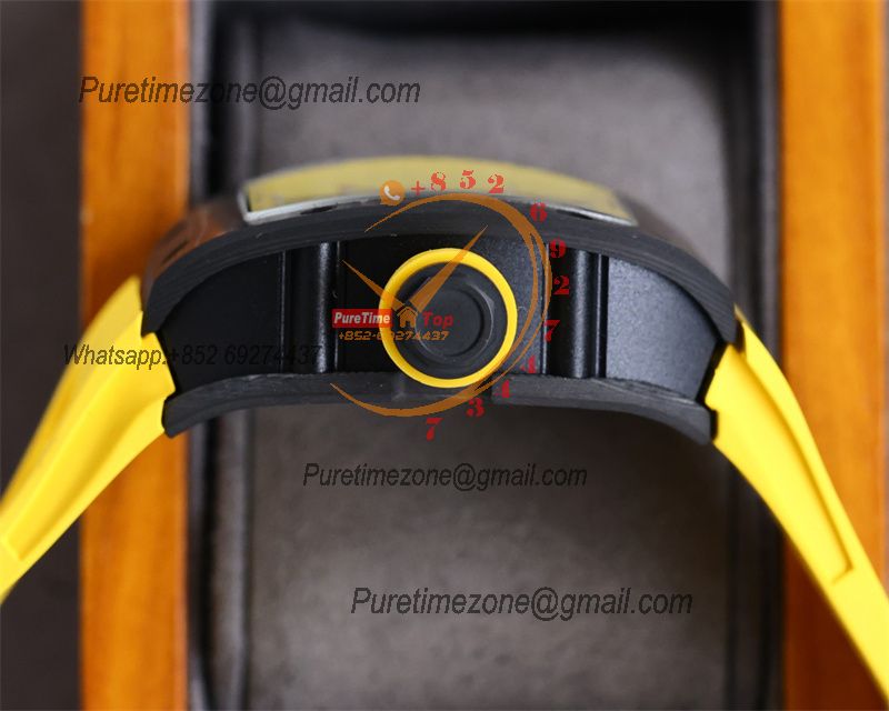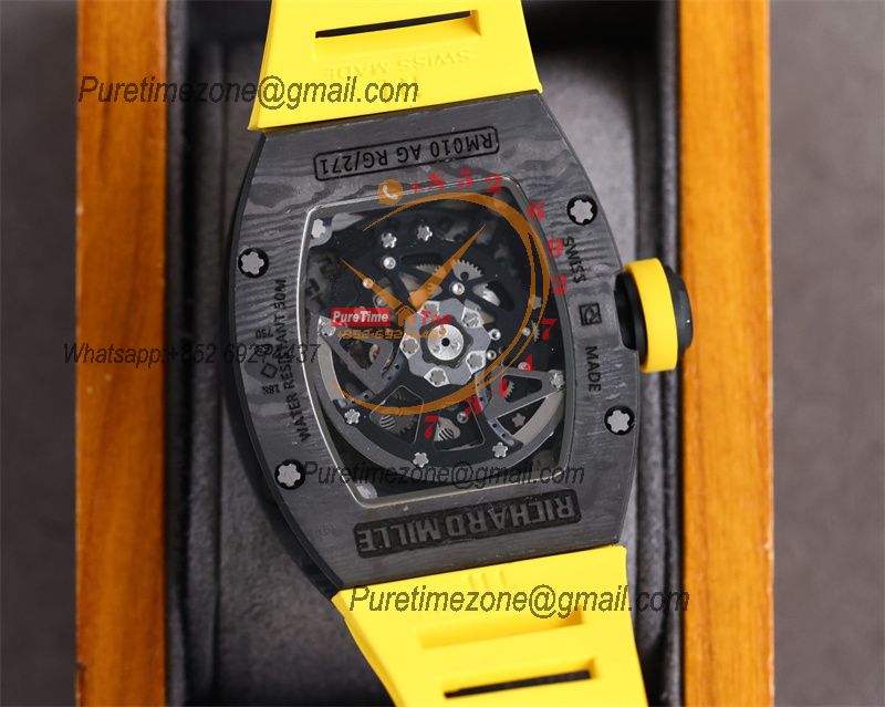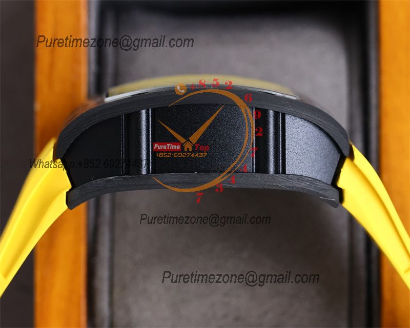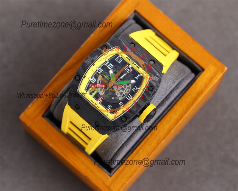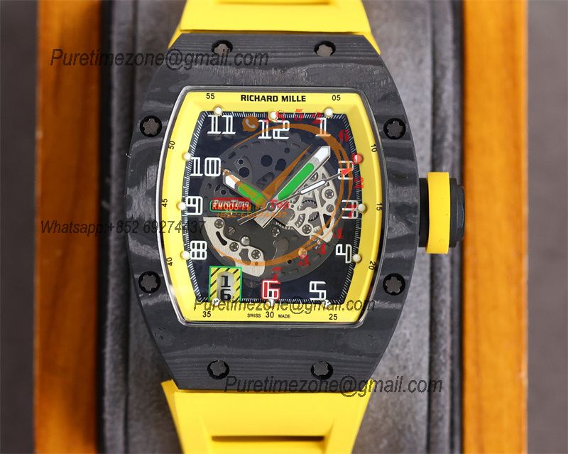 Home Richard Mille RM010 Miyota Automatic Mens Watch RMF Carbon Fiber Skeleton Dial Yellow Rubber Strap CHS