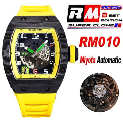 Home Richard Mille RM010 Miyota Automatic Mens Watch RMF Carbon Fiber Skeleton Dial Yellow Rubber Strap CHS