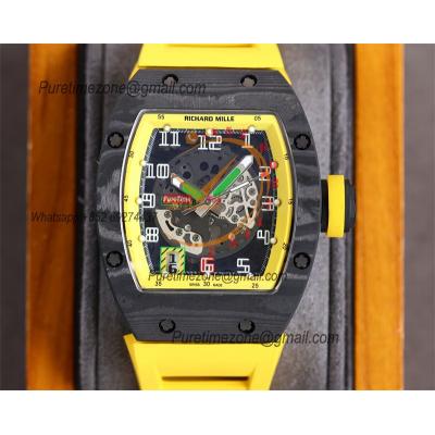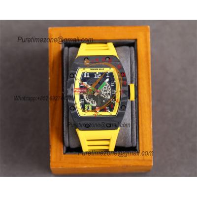 RM010 Miyota Automatic Mens Watch RMF Carbon Fiber Skeleton Dial Yellow Rubber Strap CHS