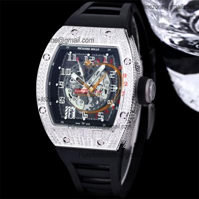 Home Richard Mille RM010 Miyota Automatic Mens Watch RMF Diamonds Case Skeleton Dial Black Rubber Strap CHS