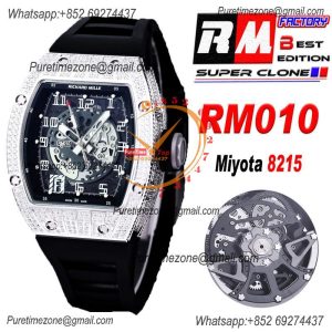 RM010 Miyota Automatic Mens Watch RMF Diamonds Case Skeleton Dial Black Rubber Strap CHS $585.00 $390.00
