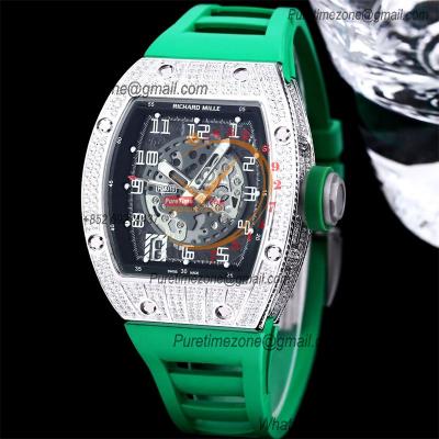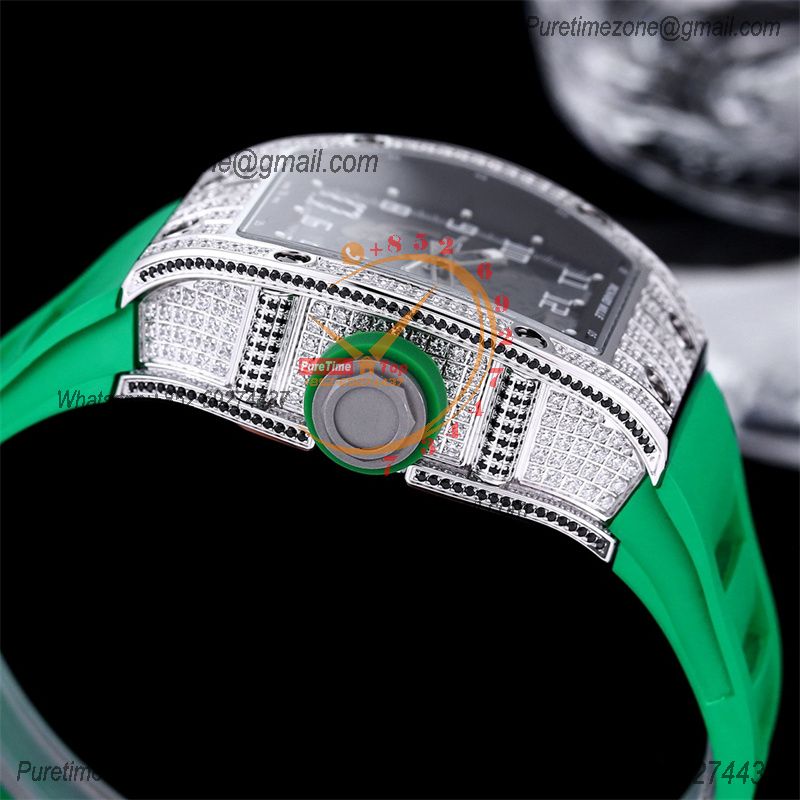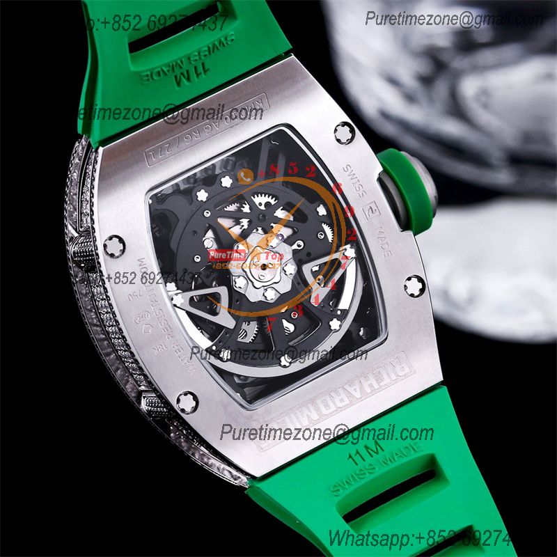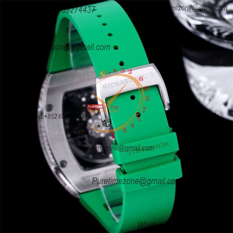 RM010 Miyota Automatic Mens Watch RMF Diamonds Case Skeleton Dial Green Rubber Strap CHS $585.00 $390.00