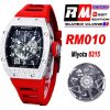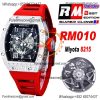 RM010 Miyota Automatic Mens Watch RMF Diamonds Case Skeleton Dial Red Rubber Strap CHS