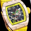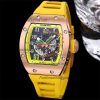 RM12-01 José Balvin Automatic Tourbillon Mens Watch RMF Black Carbon Fiber Skeleton Dial Yellow Rubber Strap CHS AAA