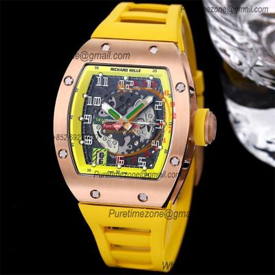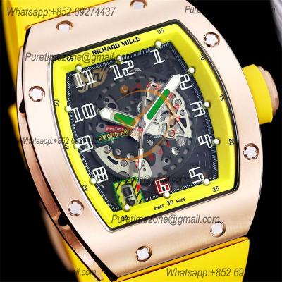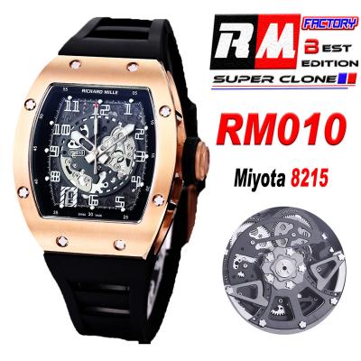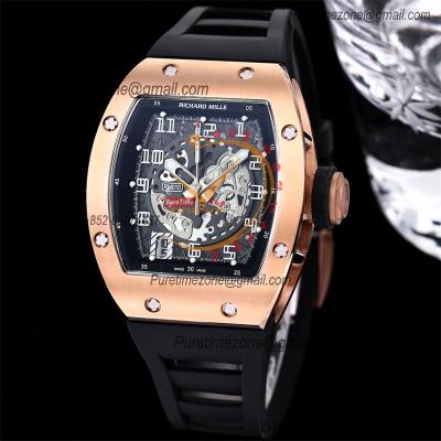 Home Richard Mille RM010 Miyota Automatic Mens Watch RMF Rose Gold Skeleton Dial Black Rubber Strap CHS
