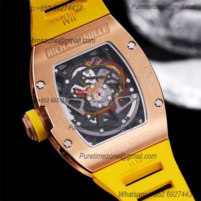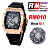 RM010 Miyota Automatic Mens Watch RMF Rose Gold Skeleton Dial Black Rubber Strap CHS