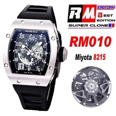 Home Richard Mille RM010 Miyota Automatic Mens Watch RMF Steel Case Skeleton Dial Black Rubber Strap CHS