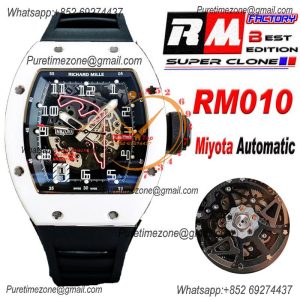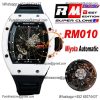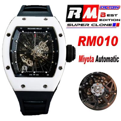 Home Richard Mille RM010 Miyota Automatic Mens Watch RMF White Ceramic Skeleton Dial Black Rubber CHS