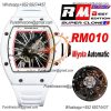 Home Richard Mille RM010 Miyota Automatic Mens Watch RMF White Ceramic Skeleton Dial White Rubber CHS