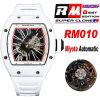 RM010 Miyota Automatic Mens Watch RMF White Ceramic Skeleton Dial White Rubber CHS