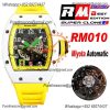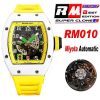 RM010 Miyota Automatic Mens Watch RMF White Ceramic Skeleton Dial Yellow Rubber CHS