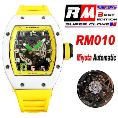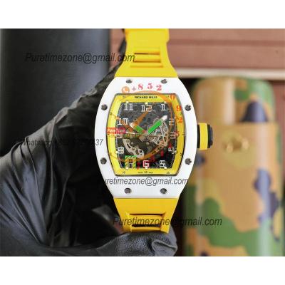 Home Richard Mille RM010 Miyota Automatic Mens Watch RMF White Ceramic Skeleton Dial Yellow Rubber CHS