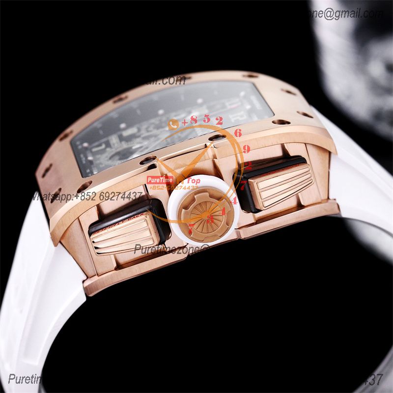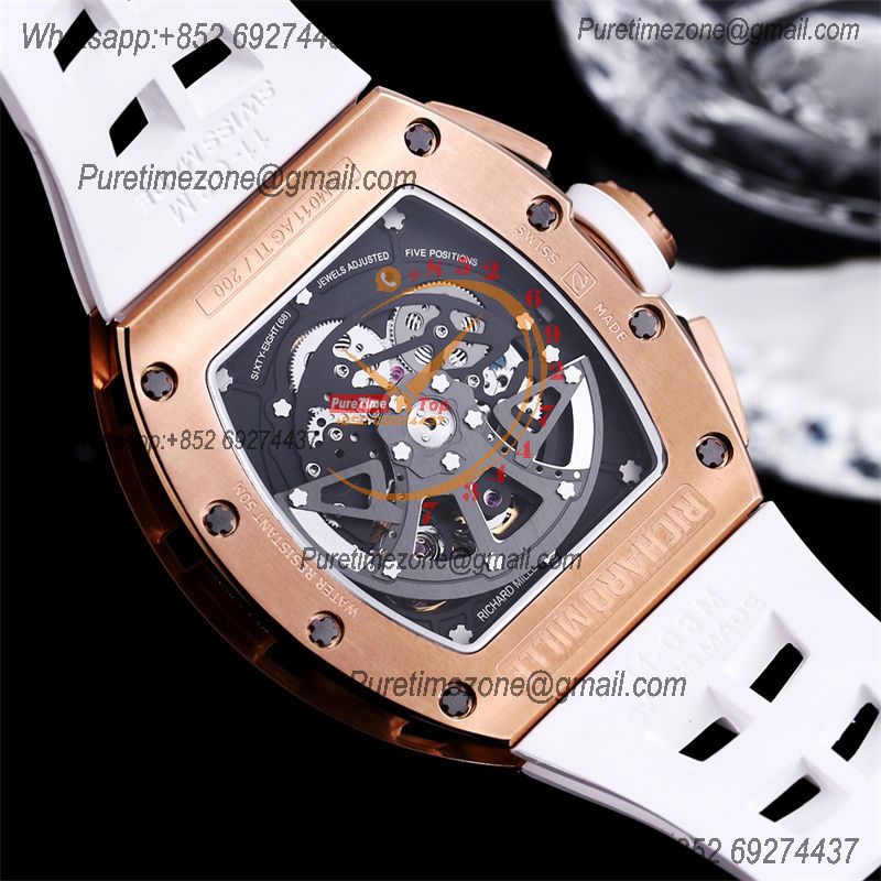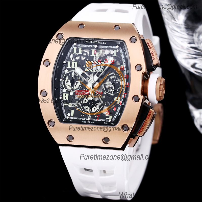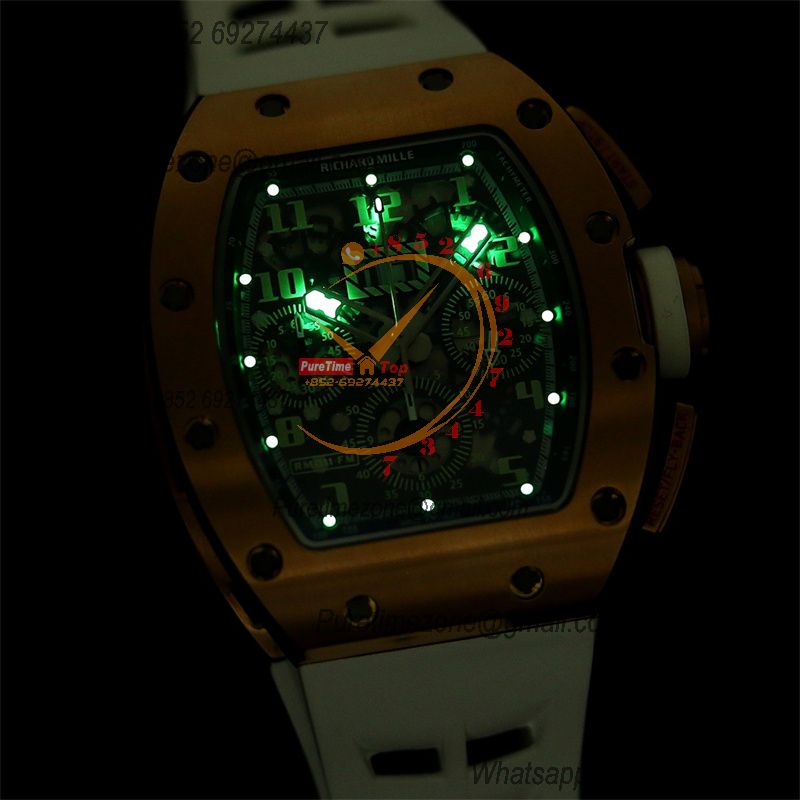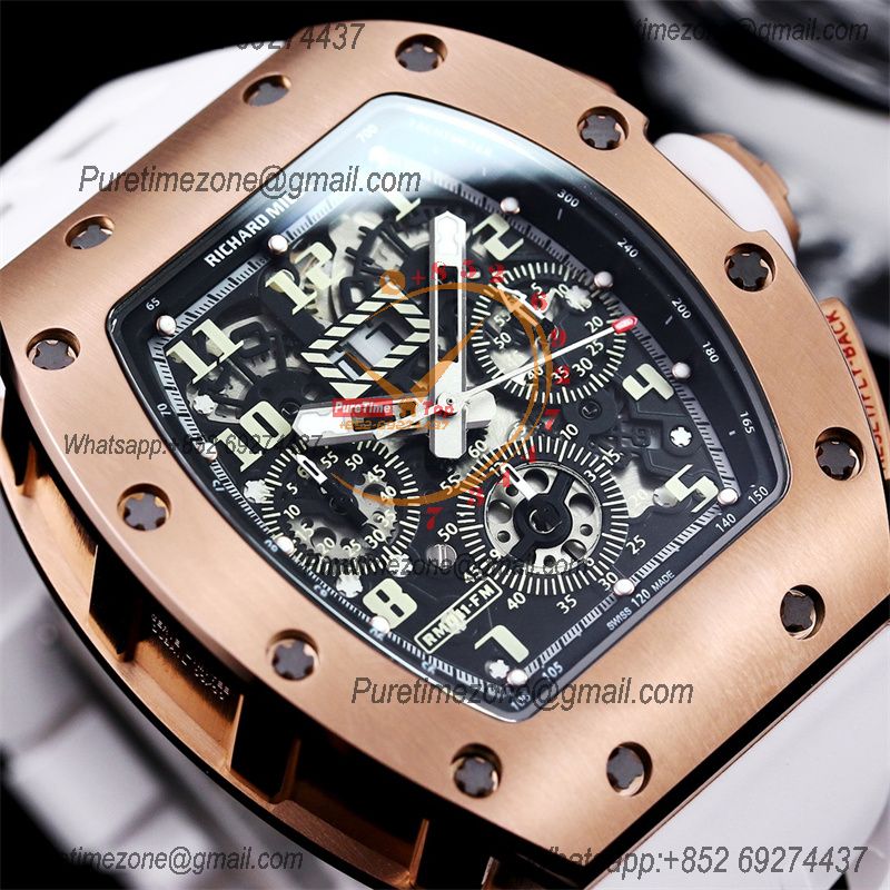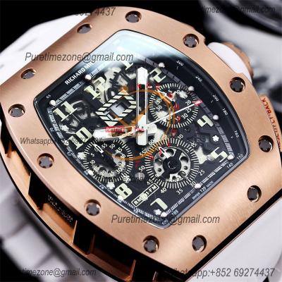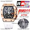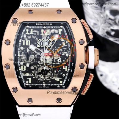 RM011 Felipe Massa A7750 Automatic Chronograph Mens Watch RMF Best Edition RG Black Dial White Rubber Strap CHS
